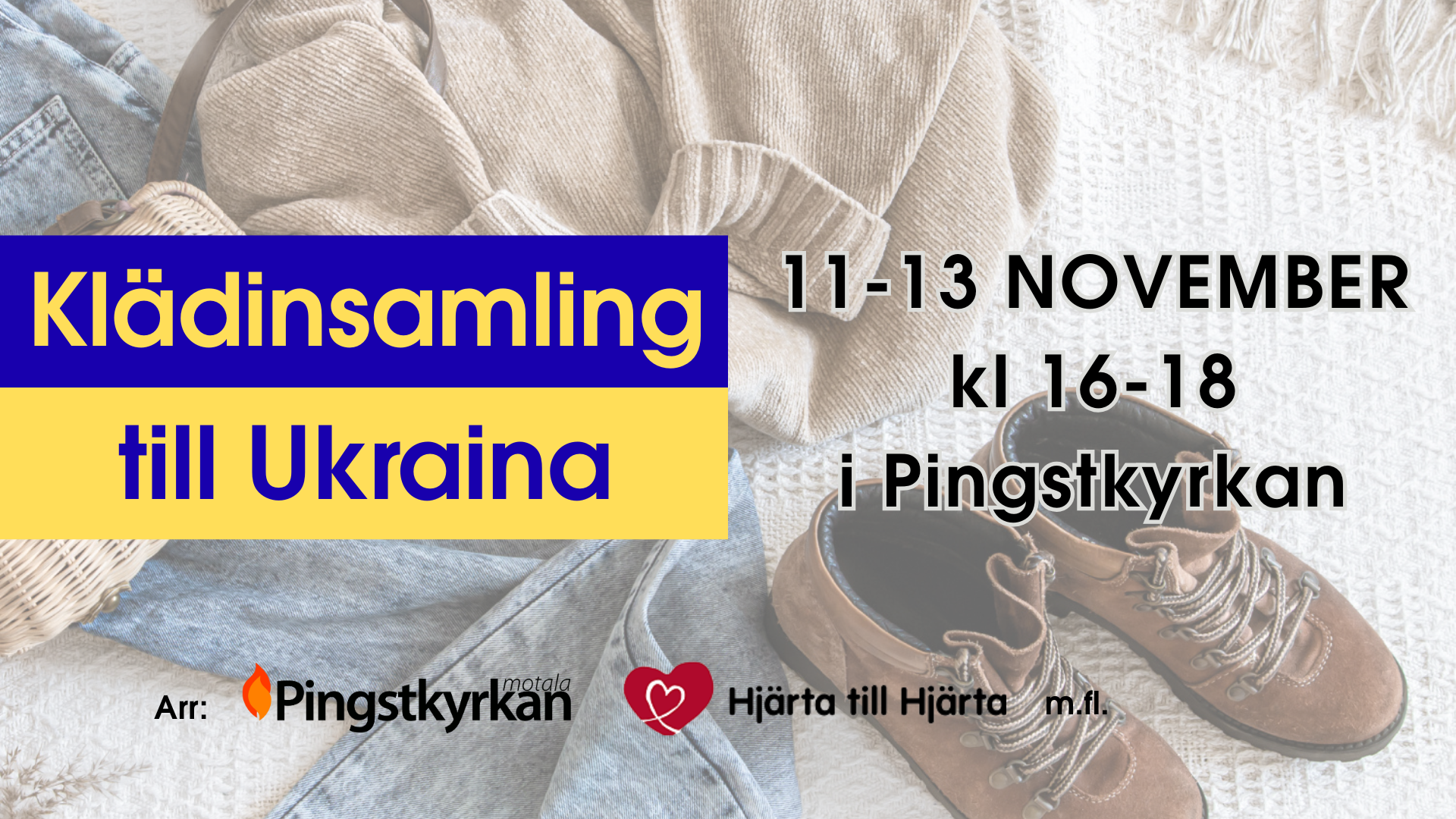 Tisdag 11 nov 16:00-18:00 Onsdag 12 nov 16:00-18:00 Torsdag 13 nov 16:00-18:00 Dessa dagar är du välkommen att lämna in kläder till vår insamling till Ukraina. Arbetet sker i samarbete med Hjärta till Hjärta…