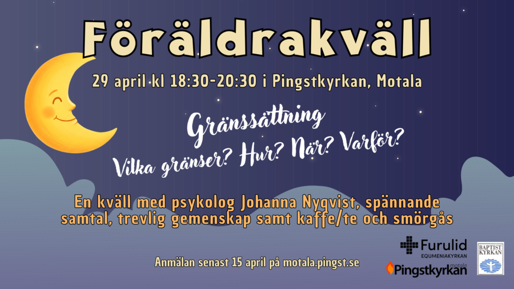 Läs merVälkomna på en föräldrakväll - för dig som har barn i åldern 0-18 år. Onsdag 29 april kl.18:30-20:30 i Pingstkyrkan! Vi får besök av psykolog…